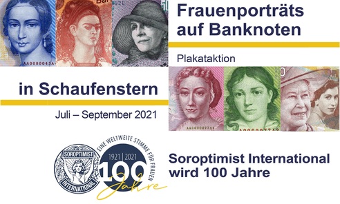 Der Soroptimist- Club Landshut zeigt zum 100jährigen Jubiläum von Soroptimist International von Anfang Juli bis Ende September Porträts berühmter Frauen, die auf Geldscheinen aus aller Welt abgebildet sind.