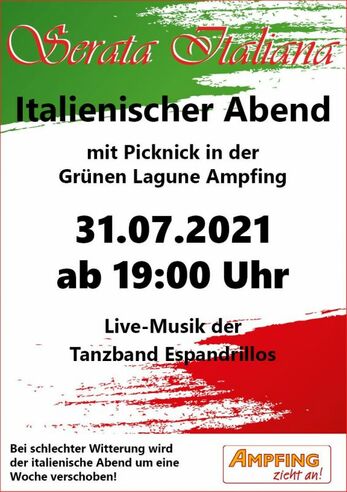 Italienischer Abend in der grünen Lagune in Ampfing mit Picknick!