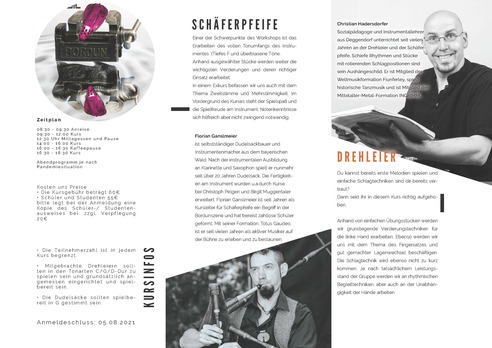 Schäferpfeife/ Drehleier/Ensemble - Eintägiger Workshop für Bordun-Instrumente (Corona zum Trotz)