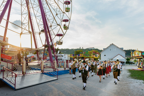 Gemütlich miteinander feiern, Festatmosphäre und den Duft von bayerischen Schmankerln schnuppern und sich bei vielen rasanten Fahrgeschäften den Bauch kitzeln lassen.