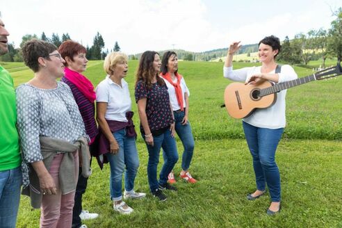 Wir treffen uns um 10.00 Uhr zu einem spannenden Jodelkurs mit Hedwig, werden in geselliger Runde ein köstliches Mittagessen in unserer Kaminstube genießen und am Nachmittag gemeinsam mit der Sehwebebahn aufs Hörnle fahren (bei gutem, trockenen Wetter), um dort zusammen zu tönen, jodeln und singen!