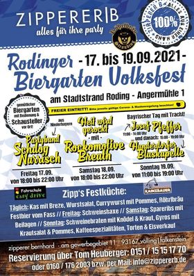 Nach 2020 kann auch 2021 pandemiebedingt das Rodinger Volksfest leider nicht stattfinden. Doch ganz ohne Volksfestatmosphäre möchte man in Roding nicht auskommen. Als quasi Ersatz folgt die zweite Auflage des Biergartenvolkfestes der Rodinger Gastronomie vom 25. Juni bis 09. Juli.Beim diesjährigen Biergartenvolkfest werden zehn Gastronomen mit ihren Biergärten den Besuchern zumindest ein wenig Volksfestatmosphäre vermitteln. Volksfestschmankerln und Blasmusik darf hierbei natürlich nicht fehlen.