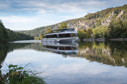 Während der rund vierstündigen Schifffahrt auf der neun MS Renate von Kelheim durch das Altmühltal bis Riedenburg und wieder zurück