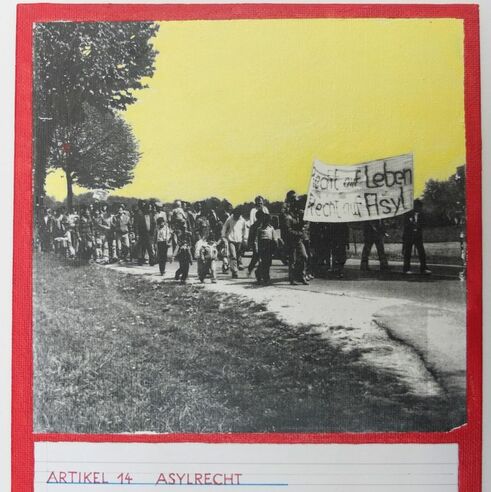 In der Ausstellung hängt ein Poster mit den Artikeln, sodass der Betrachter die Möglichkeit