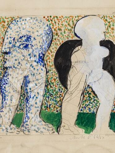 Die sechziger Jahre, in denen Horst Antes Kopffüßler entstanden, waren eine Zeit gesellschaftlicher Umbrüche. Horst Antes, 1936 geboren, mag die Studentenrevolten in Paris und Berlin, den Protest der Jugend gegen die seit Ende des Faschismus nicht aufgelösten Widersprüche und Verschleierungen aus der Distanz betrachtet haben. Als Künstler hat er auf das Infragestellen der herkömmlichen Ordnung sehr eindeutig, mit der Wiedereinführung des Figürlichen in die Malerei reagiert, die seit Ende des Zweiten Weltkriegs durch die Abstraktion dominiert wurde.Die idealtypische Erscheinung des Kopffüßlers ließ viele Projektionen zu und wies über die jüngere Vergangenheit und die aktuelle Geschichte hinaus. Mit seinem großen, im Profil gesehenen Kopf, der aus der Stirn sich bruchlos fortsetzenden Nase, dem fehlenden Rumpf und den direkt am Kopf ansetzenden Beinen und Füßen ist es eine Phantasiegestalt, die sich künstlerisch in viele Richtungen weiterentwickeln ließ.Das Franz Marc Museum verdankt seinen großen und repräsentativen Bestand an Werken Horst Antes` den Münchener Galeristen Etta und Otto Stangl, die den Künstler vertraten. Die Ausstellung zeigt daher nicht nur Kopffüßler in vielen Varianten, sie spiegelt auch die Freundschaft zwischen den Galeristen und dem Künstler mit Karten, Briefen und Skizzen aus ihrer Korrespondenz.