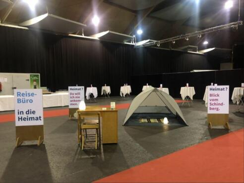 Was machen ein rollbarer Schreibtisch, ein Zelt und sieben Tafeln mit Statements zum Heimatbegriff in der Stadtbibliothek?Die Antwort auf diese Frage erschließt sich erst bei näherer Betrachtung:Die Münnerstädter Künstlerin Mia Hochrein wird mit einer mobilen Installation in der Stadtbibliothek Hammelburg zu Gast sein. Die Installation trägt den Titel „Reise-Büro in die Heimat“. Mit ihrem mobilen Schreibtisch reist die Kunstfigur Helga Heimer durch die Lande und steht an diesen Nachmittagen Interessierten bei ihrer Suche zu Reisen in die Heimat beratend zur Seite.All das natürlich mit Maske und gebotenem Mindestabstand.Die mobile Installation ist Bestandteil des internationalen Kunstprojekts „VIVID Freistadt transnational“. An diesem ist die Gruppe um das Münnerstädter Projekt else! beteiligt. Träger des Rahmenprojekts „VIVID Freistadt transnational“ ist der Altstadtverein Münnerstadt e.V., internationaler Kooperationspartner der Verein kult:Mühlviertel aus Freistadt (Oberösterreich). Als transnationales LEADER-Projekt wird es gefördert vom Bayerischen Staatsministerium für Ernährung, Landwirtschaft und Forsten und dem Europäischen Landwirtschaftsfonds für die Entwicklung des ländlichen Raums.Was bedeutet Heimat?