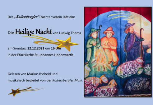 Die "Hl. Nacht" von Ludwig Thoma. In der Pfarrkirche Hohenwarth, gelesen vom Markus Bescheid und musikalisch begleitet von der "Kaitersbergler Musi".