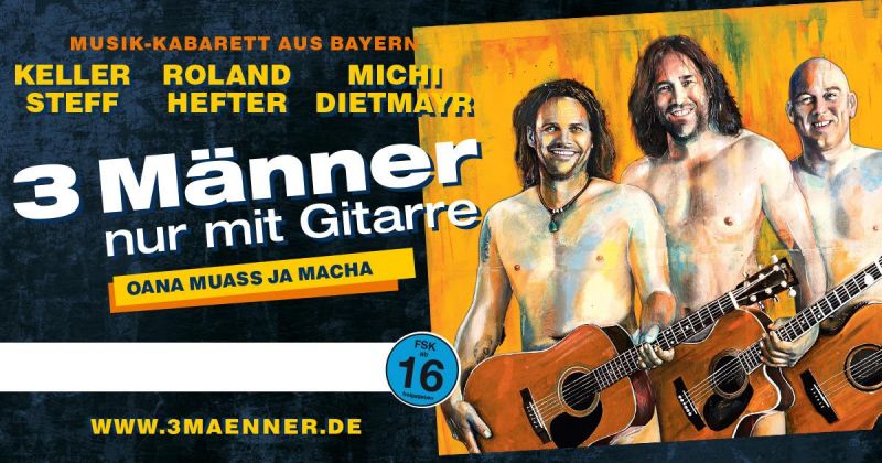 „Oana muass ja macha“„Oana muass ja macha“ - so nennt sich das druckfrische Album und zugehörige Bühnenprogramm der „3 Männer nur mit Gitarre“.Wer oda wos is jetz des denkt sich vielleicht der Ein oder Andere… Hinter der Überschrift "3 Männer nur mit Gitarre" verbergen sich nicht nur „oana“, sondern die in der Liedermacher- und Kabarettszene weit über unsere bayerische Landesgrenze hinaus bekannten Gesichter vom Keller Steff, Roland Hefter und Michi Dietmayr.Nach der „Gschicht von den 3 Männern“, dem Erstlingswerk der „3 Männer“ und der daraus entstandenen mittlerweile über 200 ausverkauften Konzerten quer durch Österreich und unseren Freistaat Bayern hindurch is jetz soweit - dachten sich die drei, um im Tonstudio ihre Köpfe erneut zusammen zu stecken.