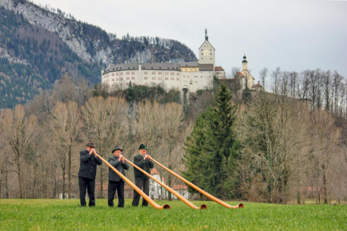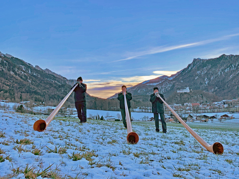 Alphornweisen erklingen zum Jahreswechsel und zum Gedenken an die verstorbenen langjährigen aktiven Gründungsmitglieder, Adolf Kieweg, Konrad Anner und Wolfgang Fischer. Zum Jahresausklang spielen die Aschauer Alphornbläser am Laternen-Weg, nach der Tourist Info in Richtung Schloss Hohenaschau. Bei Regenwetter wird im Pavillon vom Kurpark gespielt, die Zuhörer haben mit der Wandelhalle eine Überdachung.