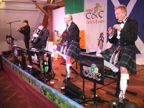 The Wild Rover, Molly Malone oder Whiskey in the Jar, wer kennt sie nicht, die bekannten Lieder von der grünen Insel. Diese und viele andere traditionelle Songs bringen „MacC&C Celtic Four“ mit auf die Bühne. Das vielfältige Repertoire der vier niederbayerischen Vollblutmusiker reicht von stimmungsvollen Balladen über fetzige Pub-Songs bis hin zu grandiosen Instrumentalstücken. Dabei kommen die typischen Instrumente wie z.B. Dudelsack, Fiddle, Akkordeon, Bódhrán oder Tinwhistle zum Einsatz. Daß das Ganze mit viel bayrischem Humor präsentiert wird, macht MacC&C Celtic Four so einmalig und sorgt für ein absolut kurzweiliges Konzertereignis.