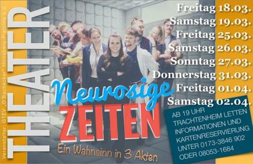 Theater des GTEV "D´Bachecker"Kartenreservierung unter 08053/1684 oder 0173 3846902 (Bezahlung an der Abendkasse)