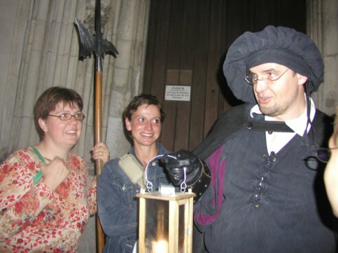 Ein Nachtwächter zieht mit Ihnen durch die romantisch ausgeleuchtete Dreiflüssestadt, klagt über liederliche Weibsbilder und sucht sich einen wackeren Assistenten.