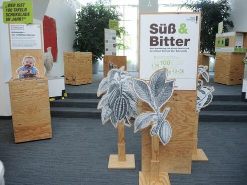 Die Ausstellung im Schloss Hohenburg zeigt die bitter-süße Wahrheit über Schokolade Noch immer stecken in fast jeder Schokolade Hunger, Armut und ausbeuterische Kinderarbeit. Diesem Missstand widmet sich die INKOTA-Ausstellung „Süß & Bitter“. Sie ist auf Einladung der St.-Ursula-Schulen von 08.03. bis zum 05.04.2022 in Schloss Hohenburg zu Gast. In der Ausstellung, die im Rahmen der Kampagne Make Chocolate Fair! der entwicklungspolitischen Organisation INKOTA konzipiert wurde, erfahren die Besucherinnen und Besucher, ob Schokolade wirklich alle glücklich macht, und lernen den Produktionsweg von der Kakaobohne bis zur Schokoladentafel kennen. Mit einem Mix aus Fühl-, Video- und Hörstationen sowie Texttafeln regt die Ausstellung alle Sinne an und informiert über die Probleme im globalen Schokoladengeschäft.Öffnungszeiten für externe Besucher:Am 11.03., 12.03., 18.03., 25.03. und 01.04. jeweils um 17.00 Uhr; Treffpunkt: SchlosshofSonderöffnungszeiten für Gruppen nach Absprache möglichDa aufgrund der Abstandsbestimmungen nur etwa 15 Personen gleichzeitig die Ausstellung besuchen können, bitten wir um Anmeldung an hoecherl@st-ursula.netAnsprechpartner*in: Tamara Höcherl, St.-Ursula-Gymnasium Hohenburg, hoecherl@st-ursula.netWeitere Informationen• Webseite der Kampagne Make Chocolate Fair!: de.makechocolatefair.org• Webseite zur Ausstellung: https://www.inkota.de/als-gruppe-aktiv-werden/ausstellungen/ausstellung-suess-und-bitter