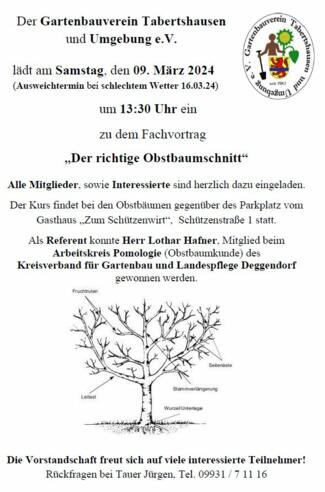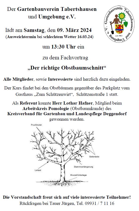 Als Referent konnte Herr Lothar Hafner, Mitglied beim Arbeitskreis Pomologie (Obstbaumkunde) des Kreisverband für Gartenbau und Landespflege Deggendorf gewonnen werden.