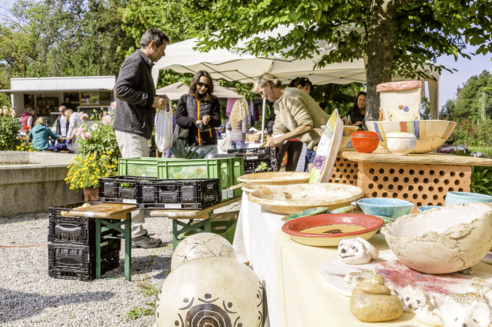 mit regionalen Produkten aus der Landwirtschaft (Obst, Gemüse, Fleisch/Wild), Ökologische Kosmetik, Schafwollprodukte, Töpferwaren...