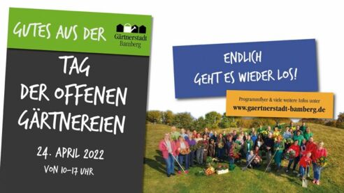 Unter diesem Motto laden die Bamberger Gärtner am 24. April wieder herzlich zu einem abwechslungsreichen Aktionstag ein. Dann öffnen sich zum neunten Male die großen Gärtnerei-Tore in der Gärtnerstadt des Weltkulturerbes Bamberg.