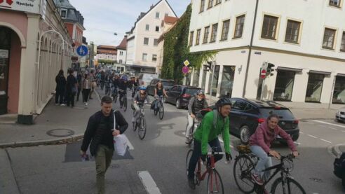 Die „Radeln for Future“ Critical Mass-Raddemo feiert das Fahrrad: Wir sind die Gegenbewegung zur alltäglichen Blechlawine in unserer Stadt. Wir füllen Kemptens Straßen mit so vielen Radfahrern, dass wir nicht mehr zu übersehen sind!