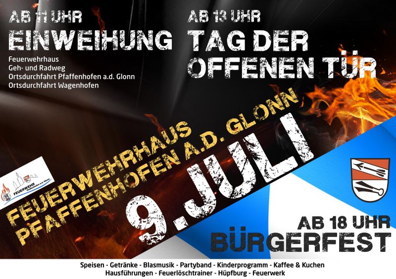 Bereits vor einiger Zeit wurden die Maßnahmen Ortsdurchfahrt Wagenhofen und Dorferneuerung Pfaffenhofen a.d. Glonn Abschnitt II fertiggestellt. Nun konnten auch die Bauarbeiten am neuen Feuerwehrhaus sowie dem Geh- und Radweg zwischen Pfaffenhofen a.d. Glonn und der Glonnbrücke Dietenhausen abgeschlossen werden.Dies wird zusammen mit dem Bürgerfest (ab 18 Uhr) gefeiert!!!