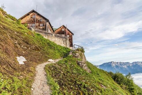 Von der Buchenhöhe geht es über die Enzianbrennhütte zum Ecker Sattel und hinauf über den österreichischen Weg zum Purtschellerhaus.