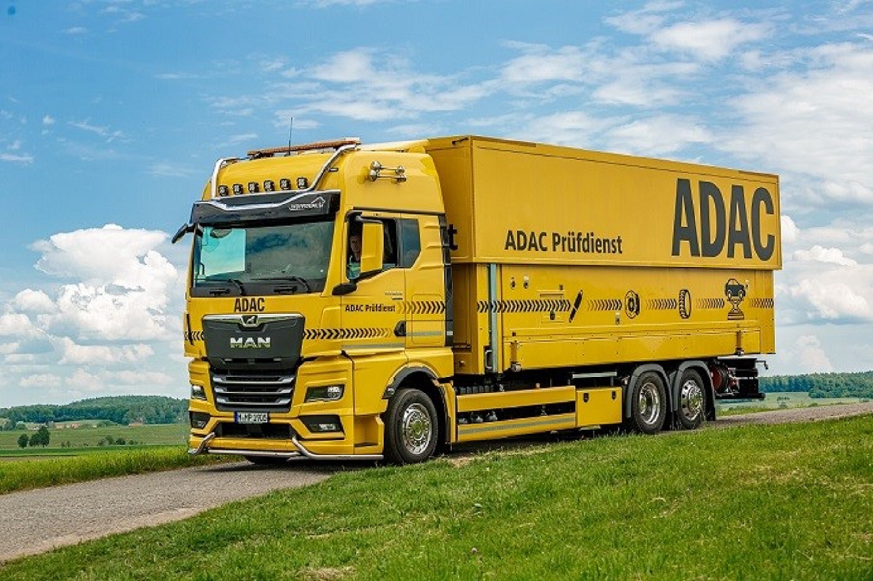 Die Zugmaschine des Mobilen Prüfdienst des ADAC Südbayern ist auf dem aktuellen Stand der Technik. Es handelt sich um einen Euro 6 Lkw (MAN TGX 26.510), der über 11 Meter lang ist, ein maximales Gesamtgewicht von 26 Tonnen hat und sehr wirtschaftlich im Verbrauch ist. Auch sicherheitstechnisch ist er mit Notbrems- und Abbiegeassistenten auf höchstem Niveau. Der in den Truck integrierte beheiz- sowie klimatisierte Container wiegt 15 Tonnen, kann mithilfe von vier Hydraulikarmen heruntergelassen und seitlich sowie nach oben ausgefahren werden. Inklusive Rampen beträgt die Länge dann rund 16 Meter, die Breite 4,5 Meter und die Höhe 4 Meter.