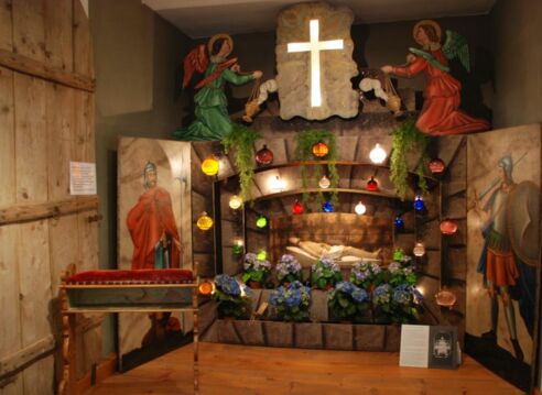 das Hutter-Museum geöffnet und die Besucher haben die Möglichkeit das „Graberl“ anzuschauen. Der Eintritt ist frei.Das Hl. Grab, das sich jetzt im Museum befindet, wurde mehr als hundert Jahre lang an den Kartagen im Altarraum der Dorfkirche St. Georg in Großberghofen aufgebaut. 1860 hatte es Schreinermeister Pfeil aus Walkertshofen gefertigt.Man dunkelte das Innere des Gotteshauses mit hölzernen Fensterläden ab. Der Kirchenraum wurde nur von den kleinen Lichtern am Grab erhellt, die durch wassergefüllte Glaskugeln leuchteten und dadurch eine besonders mystische Wirkung erzielten.Die Gläubigen versammelten sich am Karfreitag und Karsamstag zu einer ewigen Anbetung, bis zum Abend des Karsamstags in der dunklen Kirche. Während der Auferstehungsfeier wurde die Verdunkelung dann im richtigen liturgischen Moment entfernt. Das ermöglichte den Gläubigen, die Auferstehung Christi im hellen Tageslicht zu erleben.Es war damals für die Katholiken üblich, an den Kartagen die Kirchen der Umgebung zu besuchen, um die dort aufgebauten „Graberl“ anzuschauen.Erst durch die neue Liturgie des Vatikanischen Konzils wurde dieses Brauchtum beendet. Heute ist das „Hl. Grab“ der Dorfkirche von Großberghofen ein wertvoller Bestandteil des Hutter-Museums.Großberghofen, Karfreitag, 15.04.22, Hutter-Museum, Walkertshofener Str.14,