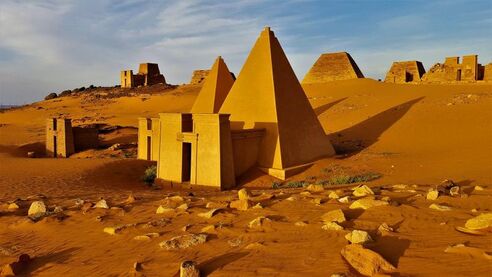 Von dort ist es nur ein Katzensprung hinein in die Sahara. Am Fuss einer Wanderdüne errichten wir unser Camp und erforschen gemeinsam die Geheimnisse einer der schönsten Wüstenlandschaften der Erde. Zwischen den Nil-Katarakten wird auch die Zeit der schwarzen Pharaonen wieder lebendig, und wir erleben einen unvergesslichen Sonnenaufgang an den Pyramiden von Nuri. Hätten Sie gedacht, dass der Sudan mehr als doppelt so viele Pyramiden beherbergt wie der nördliche Nachbar Ägypten?