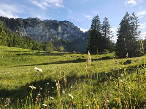 Die Wanderung führt vom Parkplatz in St. Margarethen zum Breitenberghaus. Das erste Stück des Weges ist etwas steil. Wir gehen jedoch langsam und nehmen uns viel Zeit. Der Weg bis zur Hütte beläuft sich auf ca. 1Std. 30 Minuten. Die Brotzeit bzw. Kaffee und Kuchen können wir uns dann schmecken lassen.