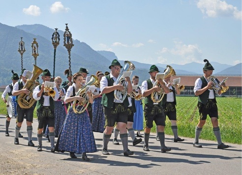 Die Grassauer Blasmusi spielt in der Kirche und beim Kirchenzug in Grassau. Beginn: 08:30 Uhr