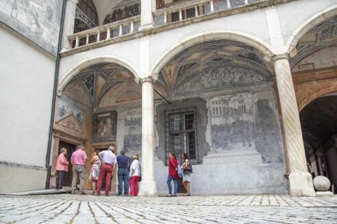 Sie entdecken die historische Altstadt mit ihren vielen kleinen, malerischen Gassen. Sie erfahren interessantes über die Sgraffiti-Kunst im Schlossinnenhof und werden durch die eindrucksvolle Schlosskapelle geführt. Außerdem besichtigen Sie die prächtige Hofkirche mit ihrer imposanten Fassade am schönen Karlsplatz umgeben von Bürger- und Patrizierhäusern. Als besonderes Highlight besuchen Sie am Ende dieses Spaziergangs noch die Provinzialbibliothek.Auf Wunsch erhalten Sie auch einen Einblick in unserem Rathaus und erfahren interessante Geschichten des Gebäudes und können die wunderschön dargestellten Rathausgemälde bestaunen.Anmeldung unter www.neuburg-donau.info oder telefonisch unter 08431 55-400.