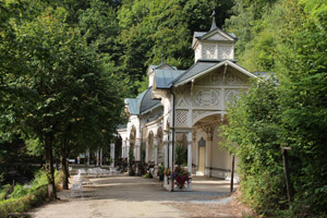 Der Kurpark von Bad Berneck liegt im tief eingeschnittenen Tal der Ölschnitz. Zahlreiche Felsen geben Gelegenheit zu einer erdgeschichtlichen Zeitreise in die vulkanische Vergangenheit des westlichen Fichtelgebirges. Mit humorvollen Textauszügen aus verschiedenen Quellen bringt Geoparkranger Gert Hartmann aber auch die historische Seite des Kurparks zur Sprache.