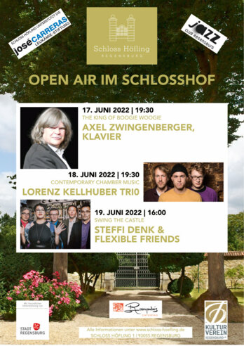 Schloss Höfling öffnet die Tore wieder. Nach der langen, veranstaltungsfreien Zeit geht es in Schloss Höfling endlich wieder los. Der Kulturverein Regensburg e. V., in Kooperation mit dem Jazzclub Regensburg, freut sich „Open Air im Höflinger Schlosshof“ ankündigen zu können.