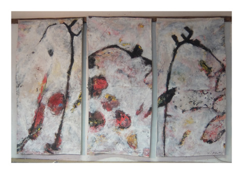 Bildunterschrift: Wolfgang Kretzer, Sandycove, 2021, Mischtechnik/Lwd., ca. 245 x 360 cm, dreiteilig