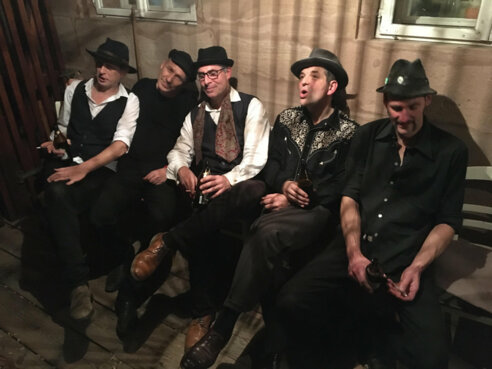 Es ist wieder soweit: Unser Innenhof verwandelt sich nach 3 Jahren Pause in einen Bahnsteig im staubigen Nirgendwo im mittleren Westen der USA. Die musikalischen "Wanderarbeiter" aus dem Nürnberger Stadtteil Gostenhof (GoHo) springen vom Güterwaggon und mit ihnen der Sound der US-amerikanischen Hobos. Im Seesack steckt eine wilde Mischung aus bizarrem Humor, traditionellem Liedgut, Americana, Country, Folksong und ein wenig Punkattitüde. Sie selbst nennen ihren Sound "Cheesy Country", Folk & Singalong.