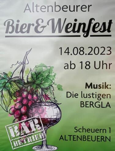 Am 14. August veranstaltet der Burschenverein Altenbeuern in Scheuern 1 sein jährliches Bier&Weinfest mit Barbetrieb.