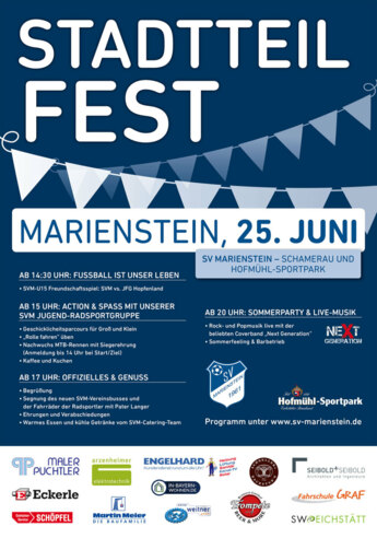 Zur fünften Auflage des Fests lädt der SVM am kommenden Samstag alle Bürgerinnen und Bürger aus Marienstein, dem gesamten Stadtgebiet und auch von außerhalb herzlich ein.