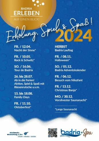 Regelmäßig lädt das Badria Spa zu Saunanächten mit Programm und Unterhaltung - jeweils unter einem bestimmten Motto.Aber auch die, die Ruhe und Entspannung suchen, sind herzlich willkommen und finden sicher immer ein stilles Plätzchen zum Genießen und Verweilen.