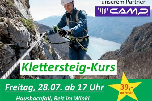 Klettergurt, Klettersteig-Set und Helm werden von uns leihweise zur Verfügung gestellt (C.A.M.P.).