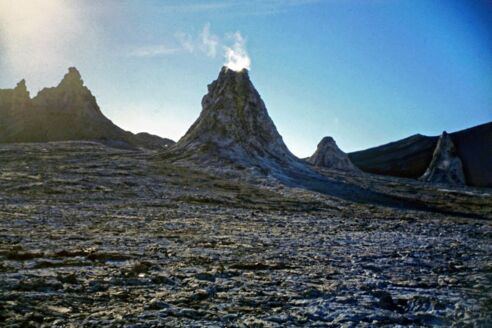 Foto 2: Tätige Hornitos (Ausbruchskegel) im Gipfelkrater des Oldoynio Lengai im Ostafrikanischen Graben