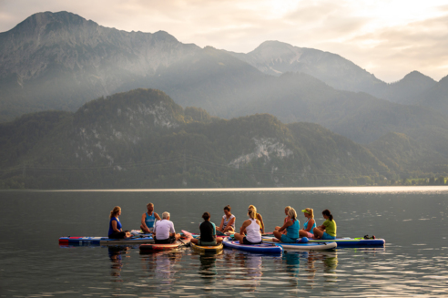 Beim SUP Yoga wird das Board zur schwimmenden Yogamatte. Die Yogaübungen und kurzen Meditationen wirken intensiver und sind doch für Jede/n leicht auszuführen. Es geht vor allem auch um eine ganz besondere Erfahrung im Einklang mit sich und der Natur.