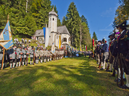 Beginn der Festmesse um 10:00 Uhr. Der Tiroler Kirchenzug ab 9:15 Uhr am Wildbichl, der Bayerische ebenfalls um 9:15 Uhr an der Pfarrkirche Sachrang. Aufstellung zum Kirchenzug um 9:00 Uhr. Die Ölbergkapelle im Aschauer Gemeindeteil Sachrang zählt zu den beschaulichen Kleinoden bayerischer Volksfrömmigkeit. Bis in die Barockzeit hinein reicht die Verehrung der Ölbergszenerie an dieser ehemaligen Nahtstelle zwischen Bayern und Tirol. Der von Roman und Film her berühmte Müllner-Peter von Sachrang rettete die aus vier verschiedenen Räumen bestehende Kapelle 1828 vor dem Verfall und ließ die Wallfahrt wiederaufleben. Erst der Freundeskreis Müllner-Peter von Sachrang besann sich in den 70er Jahren des letzten Jahrhunderts des Heiligtums und führte die inzwischen vergessene Tradition an diesem "Ort der Kraft" wieder ein. Zu dessen Gestaltung tragen die Gebirgsschützenabordnungen und verschiedene Musikgruppen von Chor, Bläsern und Alphornbläsern unter der Musikalischen Gesamtleitung von Kirchenmusiker und Komponist Hans Berger bei. Zelebrant: Weihbischof Dr. Bernhard Haßlberger.