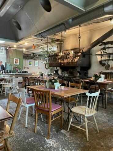 Montag bis Donnerstag ab 16 Uhr, Freitag bis Sonntag ab 12 Uhr im überdachten Hof und in der alten Schmiede.