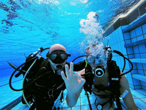 Dies erlebst du beim Pooltauchgang mit Tauchlehrer Tobias Hauer. Eine tolle Gelegenheit, in weniger als 2 Meter Tiefe das Gerätetauchen auszuprobieren. Du solltest dich im Wasser wohl fühlen, musst aber kein ausgezeichneter Schwimmer sein. Das Tauchen erfolgt direkt unter Aufsicht und Obhut eines PADI Tauchlehrers.