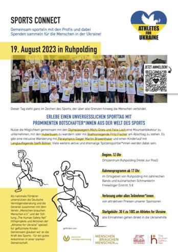 Nutze die Möglichkeit gemeinsam mit den Olympiasiegern Michi Greis und Felix Loch eine Mountainbiketour zu unternehmen, mit den Huberbuam zu wandern oder mit Biathlonlegende Fritz Fischer am Abschlag zu stehen. Es gibt eine inklusive Wanderung mit Paralympics-Sieger Martin Braxenthaler und einen Kinderlauf mit Langlauflegende Steffi Böhler. Viele weitere aktive und ehemalige Spitzensportler*innen werden dabei sein.