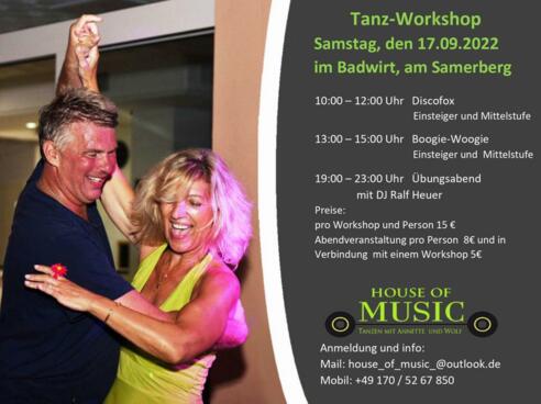 Herzliche Einladung zu unseren Tanzworkshops am Samstag, den 17.9.2022 für: