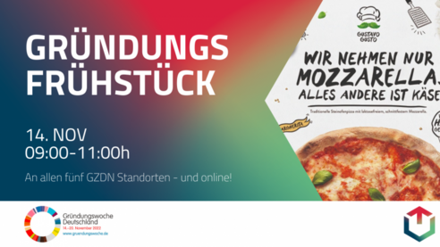 Inspiration für StartUps, Gründer:innen, Gründungsinteressierte und alle, die einfach neugierig sind!Beim gemütlichen Frühstück erzählt Christoph Schramm, Gründer der Tiefkühlpizza-Marke Gustavo Gusto seine Gründungsgeschichte und beantwortet Deine Fragen!Wir frühstücken in den Gründerzentren an allen fünf GZDN Standorten. Zusätzlich schalten wir uns - und Christoph Schramm - digital zusammen für seine Impuls und unsere Fragen.Melde Dich bei dem Gründerzentrum Deiner Wahl an :)