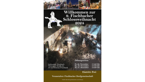 Die Fischbacher Vereinsgemeinschaft stellt wieder ein tolles Programm im romantischen Ökonomiehof zusammen. Das Hüttendorf ist mit echten Girlanden und Zweigen geschmückt und lädt zum Verweilen ein. Probieren Sie kulinarische Köstlichkeiten und flanieren Sie an den vielen Ausstellungs- und Verkaufsständen entlang.Geöffnet Freitag 17 bis 22 Uhr, Samstag 15 bis 22 Uhr und Sonntag 14 bis 20 Uhr.