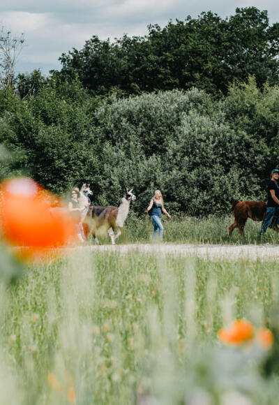 Anschließend bringen wir unsere Wandertiere zurück in ihren Stall und lassen den Tag am Lagerfeuer mit einem heißen Tee ausklingen. Wir beobachten die Lamas auf der Weide und mit ein wenig Glück trauen sich sogar die Rehe aus dem nahen Wald.