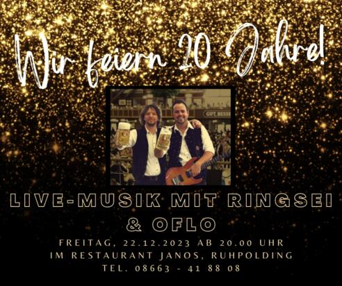Weihnachten steht vor der Tür...und damit auch unser alljährliches Jubiläum! Feiert gemeinsam mit uns 20 Jahre Janos. Für super Stimmung sorgen dieses Jahr Ringsei & Oflo!