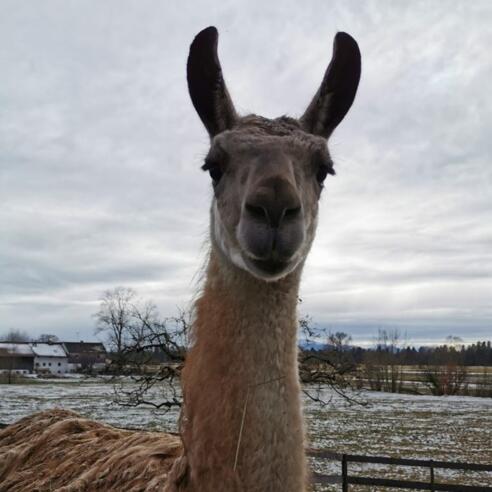Wir erleben den Winterzauber bei einer gemeinsamen einstündigen Lamawanderung durch die Ascholdinger Winterlandschaft.