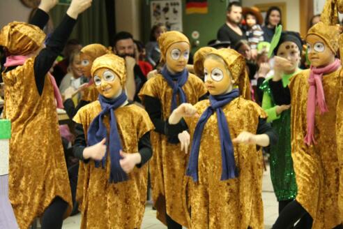 "OVI Helau" - fantastischeShowauftritte der Garde "Grün-Weiß" und tollem Unterhaltungsprogramm sorgen für ausgelassenes Faschingstreiben unserer Kleinen zum Faschingsausklang. Die Eltern und Großeltern beobachten das bunte Treiben bei Kaffee und Kuchen.